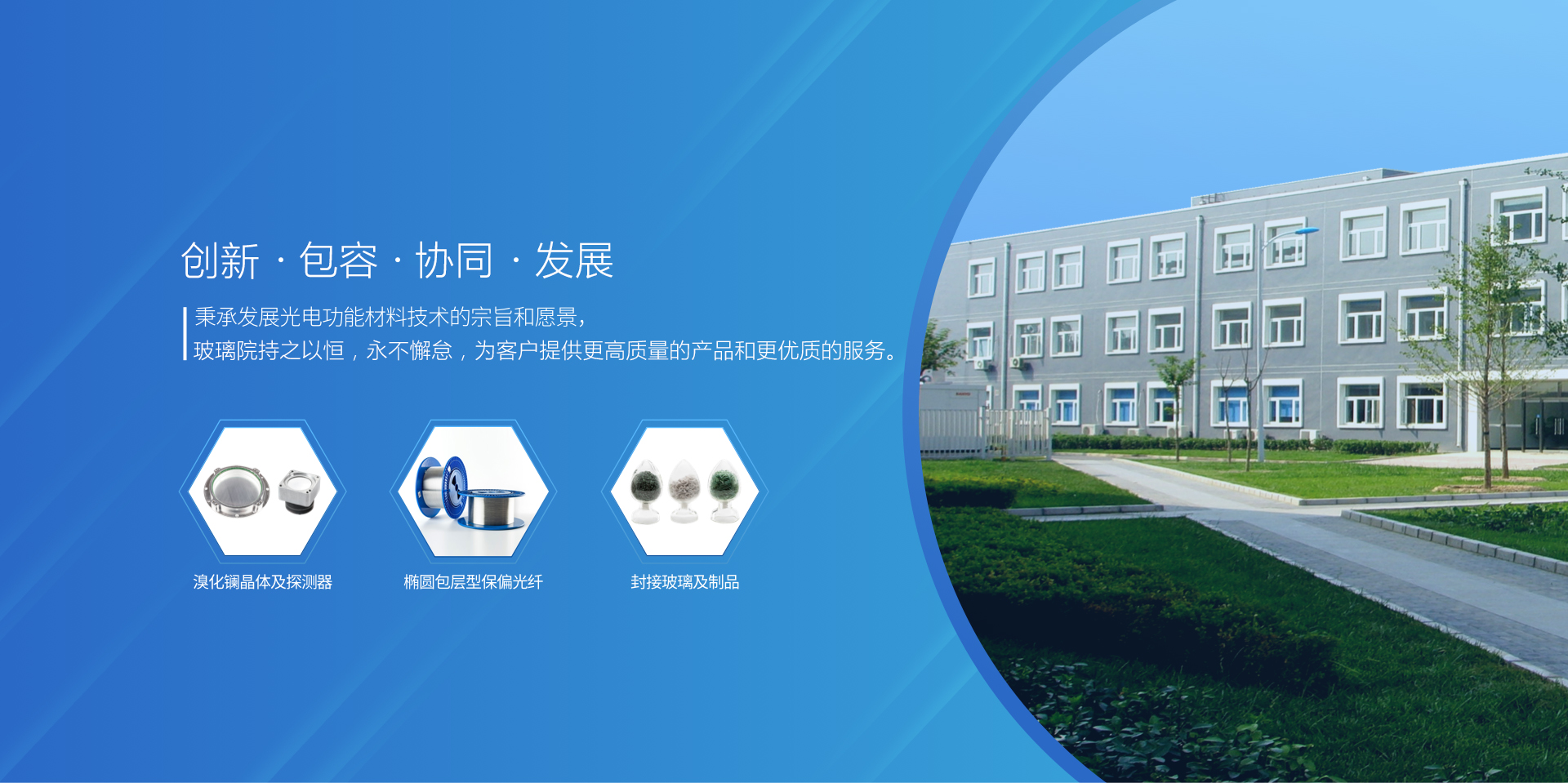 溴化鑭、溴化鈰、氯化鑭、CLYC等閃爍晶體及探測器 橢圓包層型、領結型、光子晶體型等保偏光纖及器件 封接玻璃、密封插座、高溫涂層玻璃等特種玻璃及制品。